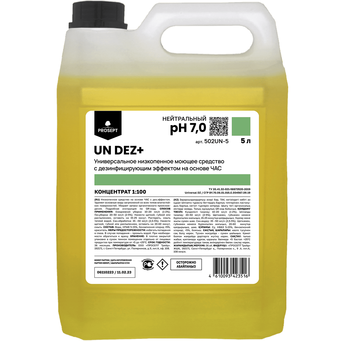502UN-5 UN DEZ (УНИВЕРСАЛ ДЗ) моющее средство с дез.эффектом. Концентрат(1:10 — 1:120)5 л.