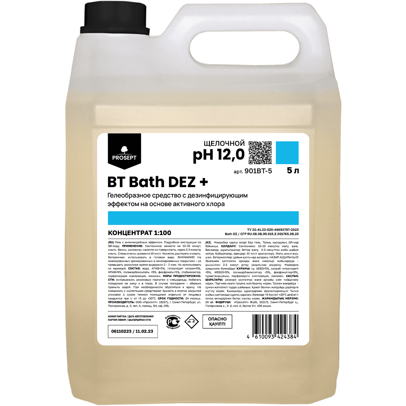 Назначение: Применяется для обработки щелочестойких поверхностей — керамических, пластиковых, нержавеющей стали, окрашенных деревянных. Может использоваться для отбеливания полов, стен и белья. ВНИМАНИЕ! С осторожностью применять на эмалированных поверхностях — не превышать указанное время выдержки (2 — 3 мин.). Не применять на хромированных поверхностях, на мраморе! Значение pH (концентрат): 12,0